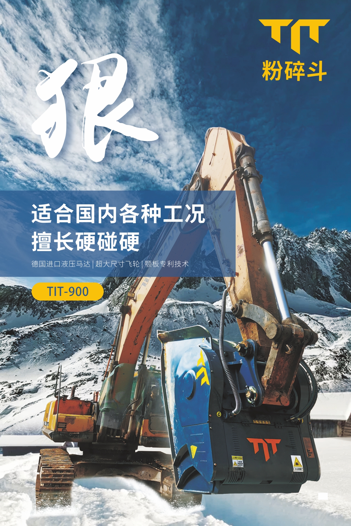 TIT,源自Titan的縮寫,原指古希臘神話中力大無窮的威猛之神,借意本產品剛勁有力,產能高效。TIT粉碎斗,也稱破碎斗,顎式破碎斗,是一款創新型挖掘機屬具,掛于挖掘機大臂上,可快速將工程惰性材料破碎成極具價值的工程用料。隨著國內基建行業展,基于市場對經濟化、效率化、環?;牧系拇罅啃枨?,破碎斗將廣泛應用于多種物料破碎場景。 |